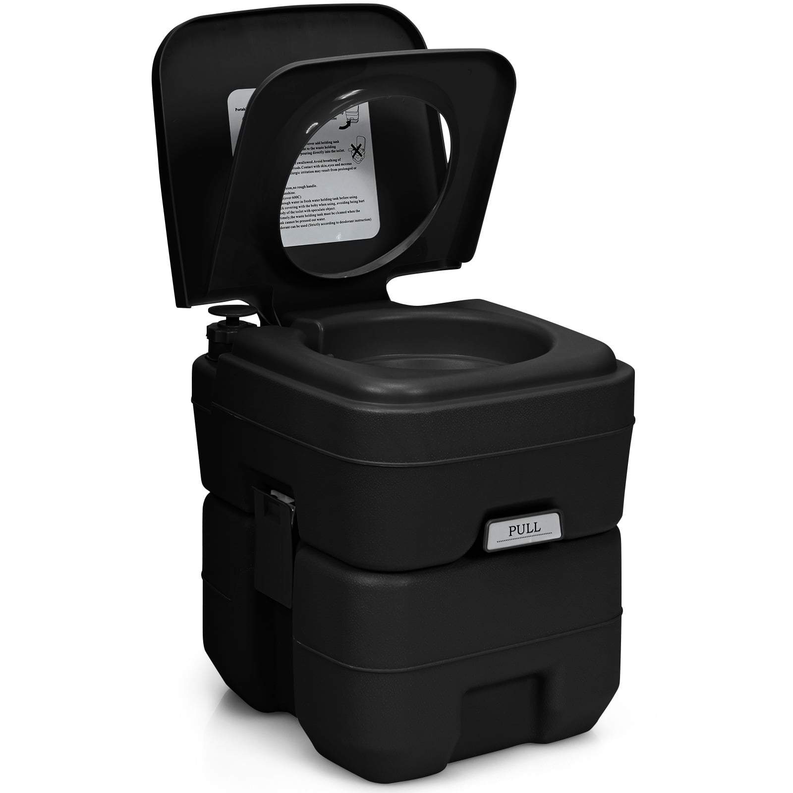 Bærbart campingtoalett med 20 liters avtakbar tank – svart