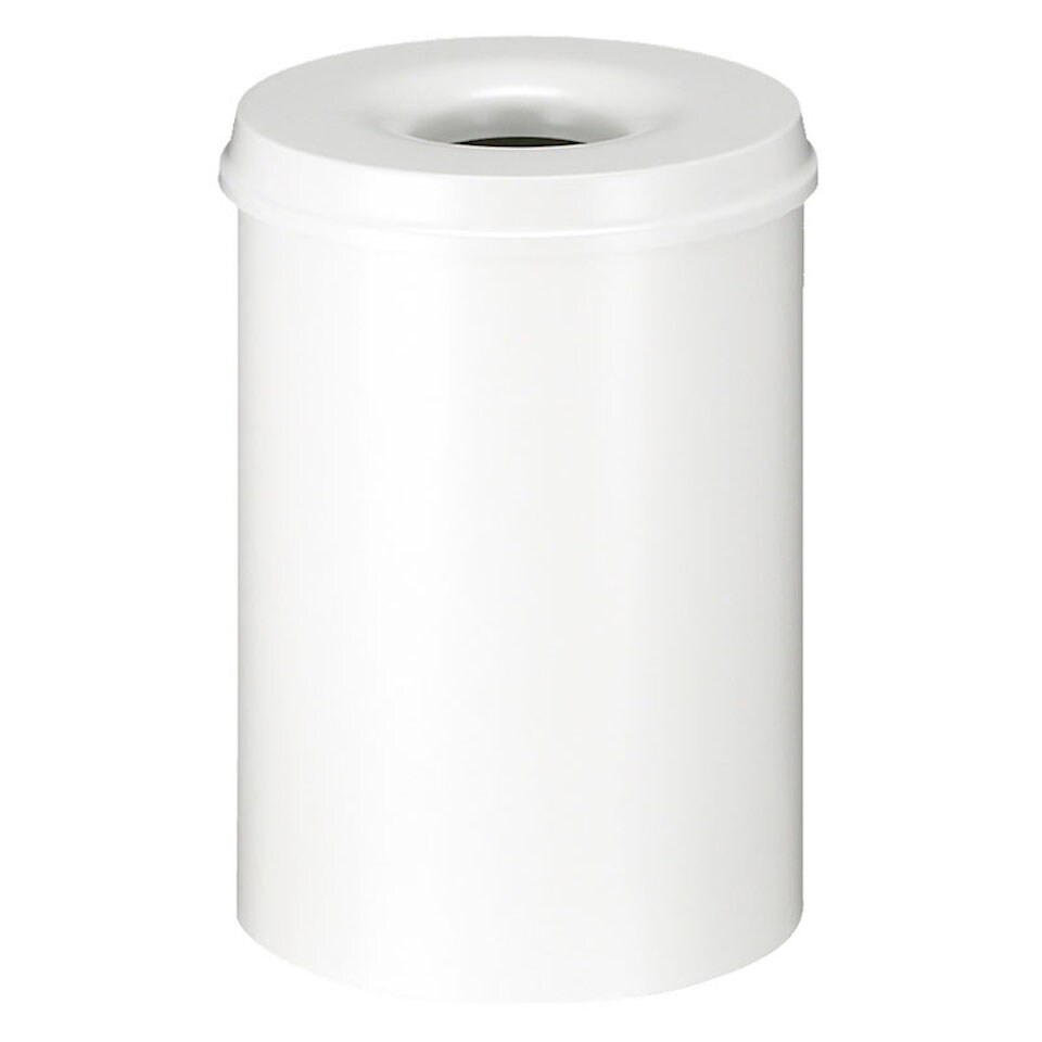 PROREGAL Selbstlöschender Papierkorb & Abfallsammler aus Metall | 30 Liter, HxØ 47x33,5cm | Weiß