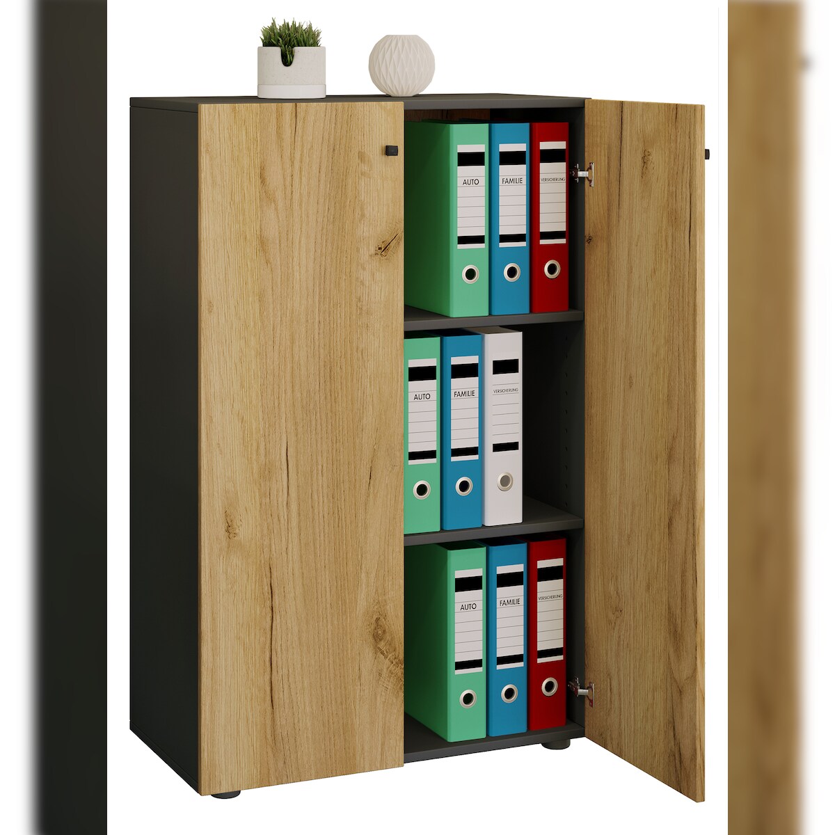 VCM Büroschrank Lona Anthrazit / Honig-Eiche