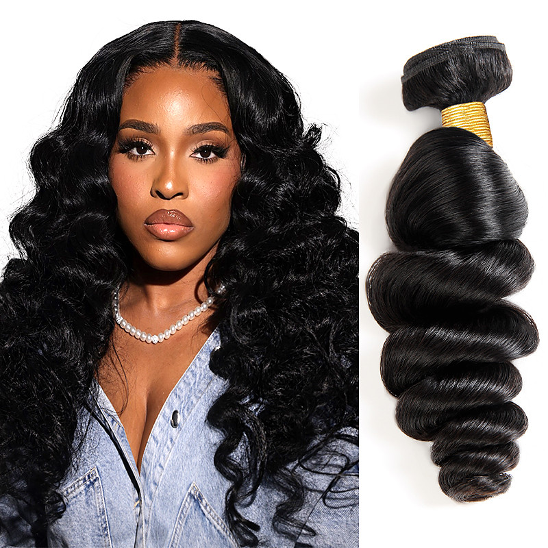 Brazilian Human Hair 1B # Natural Black Color Loose Wave Human Hair 1 Bundle 10-30 inches
