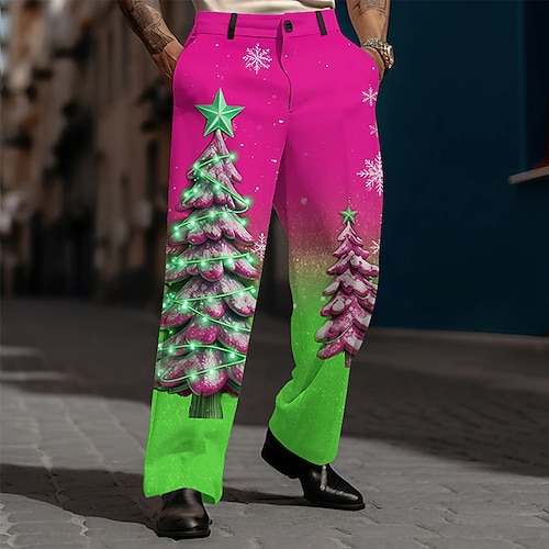 Natale Per uomo Albero di Natale Luci natalizie Pantaloni Pantaloni Eleganti Pantaloni da Abito Misura del girovita medio Moda Casual All'aperto Ferie Pantaloni eleganti con vestibilità comoda e