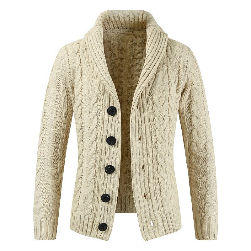Men's Sweater Cardigan Cropped Sweater Ribbed Cable Knit Knit Knitted Solid Color Shawl Collar Modern Contemporary Casual Daily Wear Clothing Apparel Fall Winter Navy Blue Beige S M L