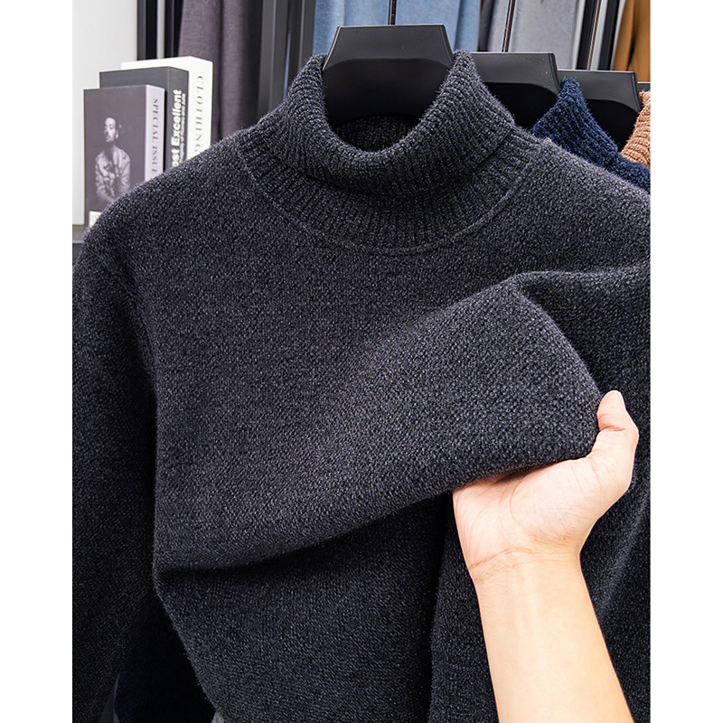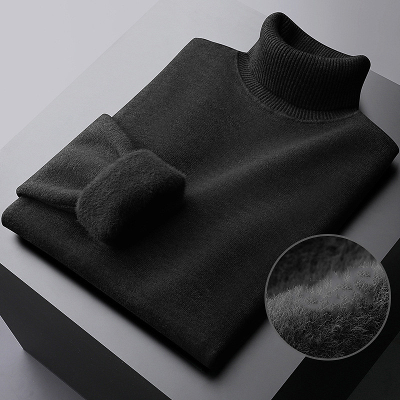 Men's Pullover Sweater Jumper Fleece Sweater Knit Sweater Ribbed Knit Regular Tops Knitted Plain Turtleneck Fashion Basic Vacation Daily Wear Clothing Apparel Fall Winter Black Navy Blue M L XL