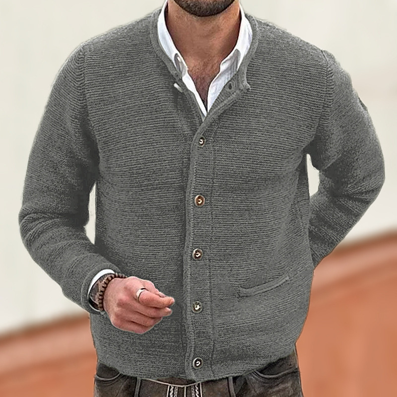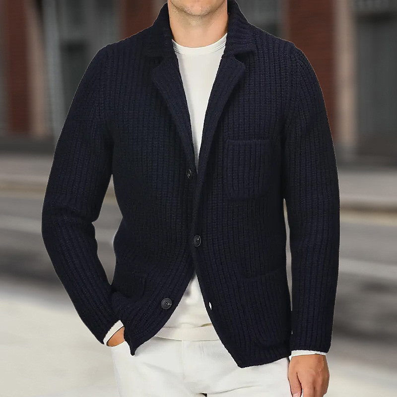 Men's Cardigan Sweater Cropped Sweater Knit Sweater Ribbed Knit Regular Tops Pocket Buttons Plain Collarless Fashion Classic Vacation Daily Wear Clothing Apparel Fall Winter Black Navy Blue M L XL