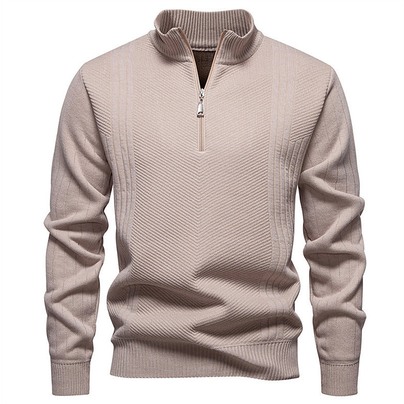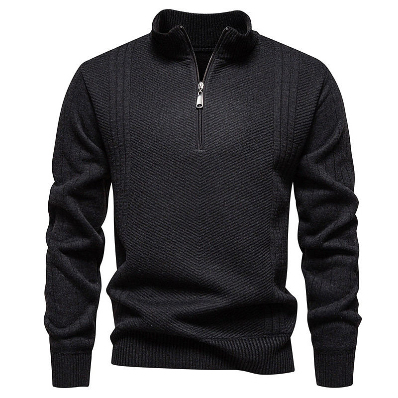 Men's Pullover Sweater Jumper Quarter Zip Sweaters Knit Sweater Cable Knit Regular Tops Knitted Plain Quarter Zip Fashion Casual Vacation Daily Wear Clothing Apparel Fall Winter Black Navy Blue S M L