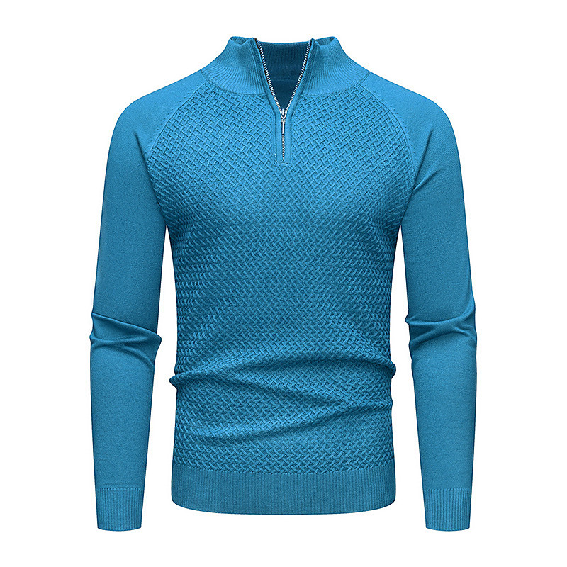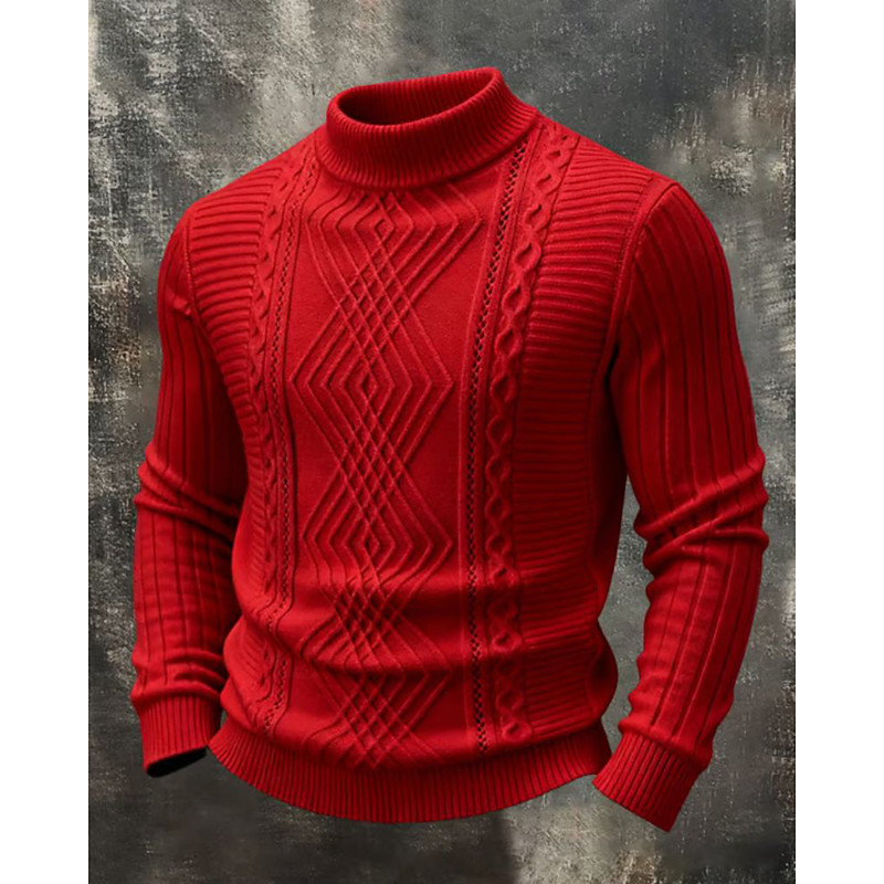 Men's Sweater Pullover Sweater Jumper Knit Sweater Ribbed Cable Knit Regular Tops Knitted Solid Color Mock Neck Fashion Streetwear Casual Daily Wear Clothing Apparel Fall Winter Blue Black S M L