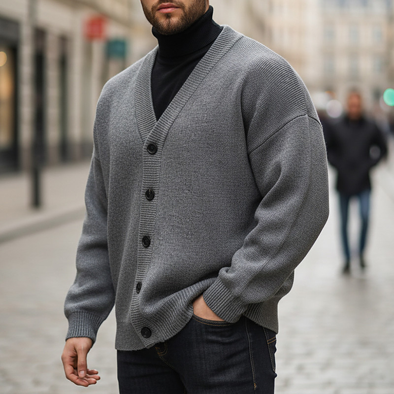 Men's Cardigan Sweater Cropped Sweater Knit Sweater Ribbed Knit Regular Tops Button Up Plain V Neck Fashion Classic Vacation Daily Wear Clothing Apparel Fall Winter Black Navy Blue M L XL