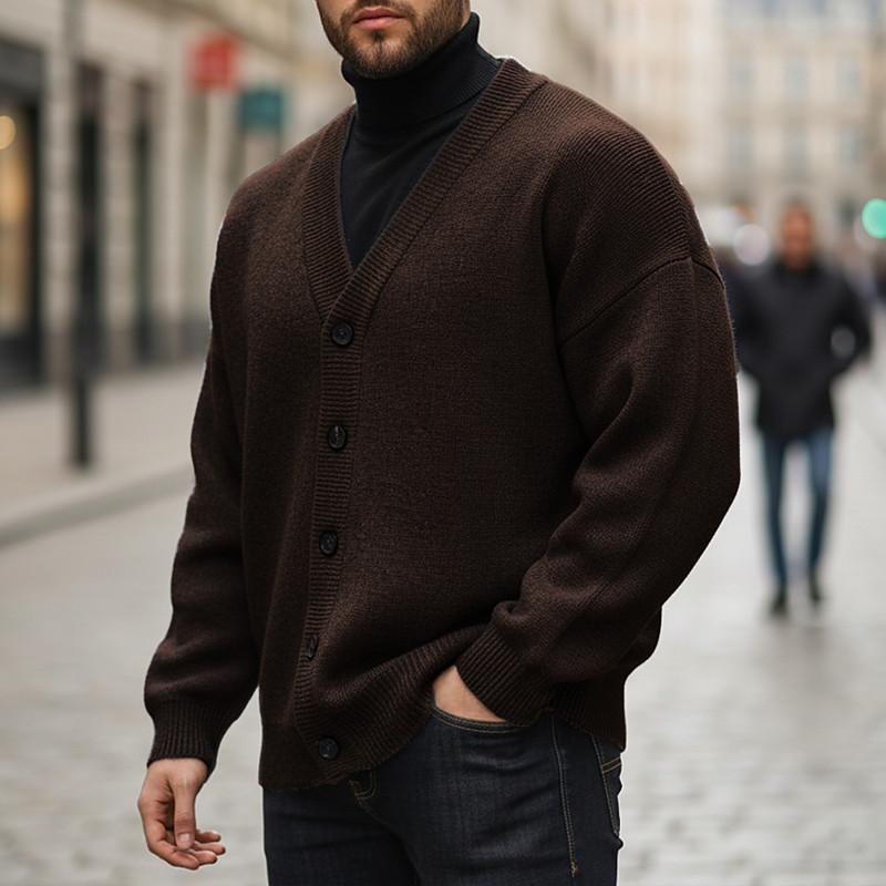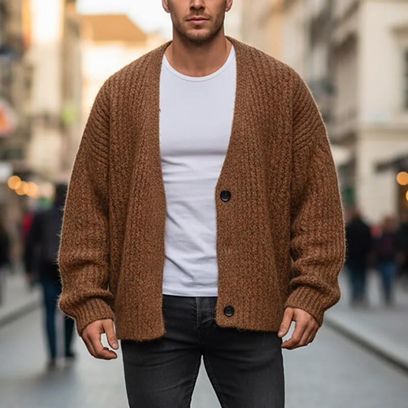 Men's Cardigan Sweater Cropped Sweater Knit Sweater Ribbed Knit Regular Tops Button Up Plain V Neck Fashion Classic Vacation Daily Wear Clothing Apparel Fall Winter Blue Coffee M L XL