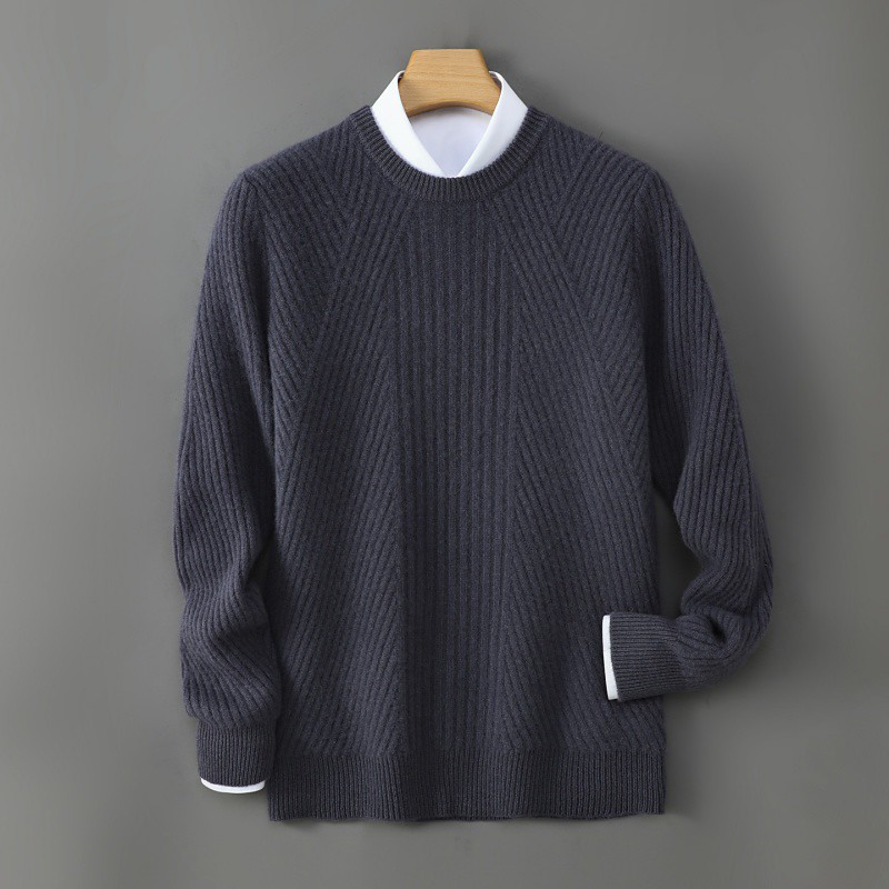 Men's Wool Sweater Knit Sweater Knitted Pullover Ribbed Knit Regular Tops Knitted Plain Crew Neck Fashion Streetwear Casual Daily Wear Clothing Apparel Fall Winter Blue Camel S M L