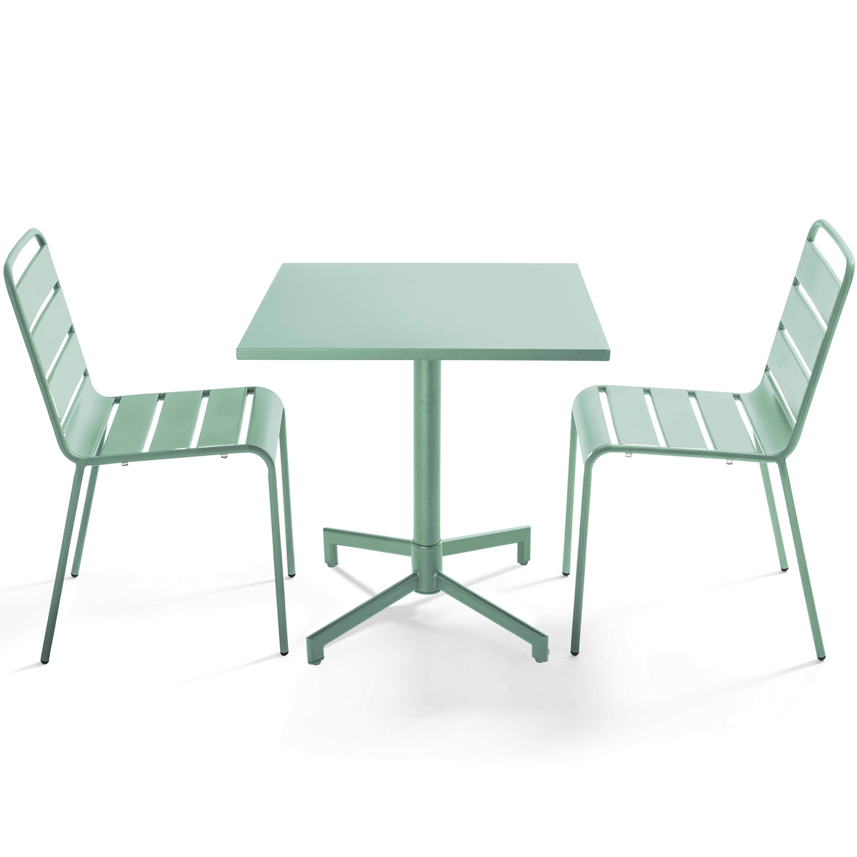 Oviala Business Set aus 70 cm Tisch und 2 Gartenstühlen aus Metall Salbeigrün