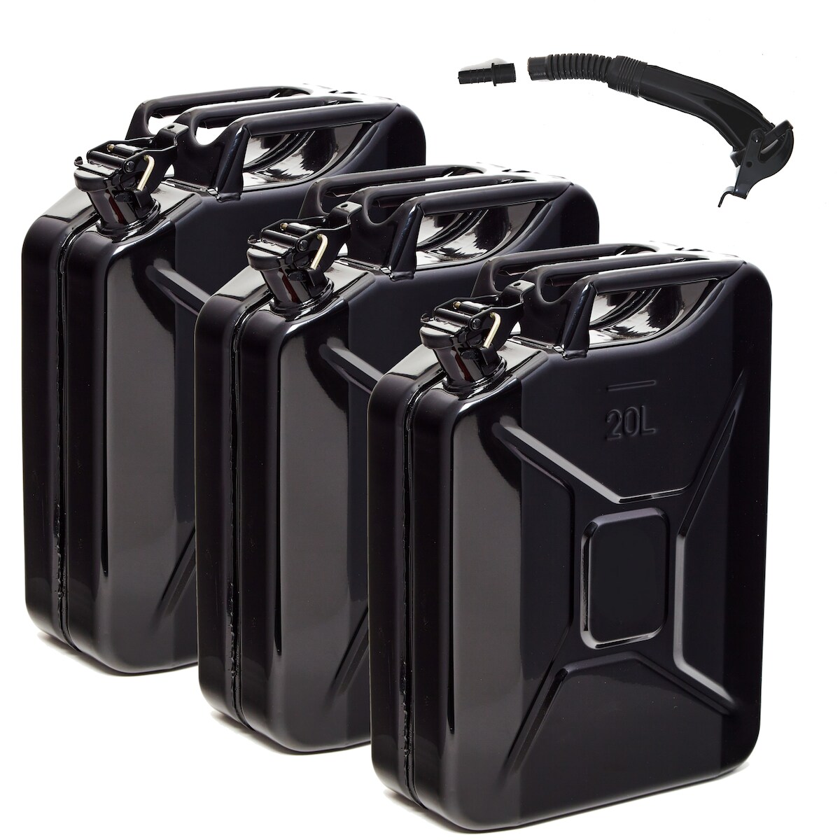 BW® Kraftstoffkanister Metall Benzinkanister 3x 5 Liter mit Ausgießer - Schwarz - RAL 9005 - TÜV-geprüft und UN-Zulassung - Made in Europe