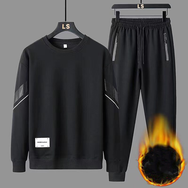Men's Tracksuit Sweatpants Fleece Tracksuit Pocket Printed Clothing Suit Fall Black White Gym Workout Sports Windproof Long Sleeve Sport Activewear Micro-elastic Regular Fit