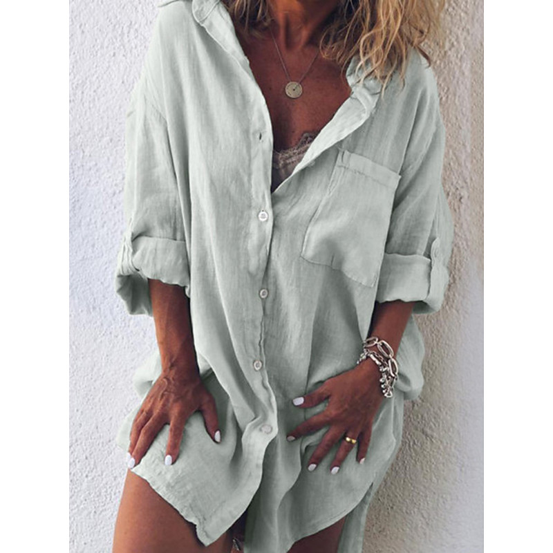 Women's Mini Dress Shirt Dress Casual Dress Basic Casual Vacation Daily Regular Fit Plain Linen Like Long Sleeve Shirt Collar Black Light Green Pink Blue Summer