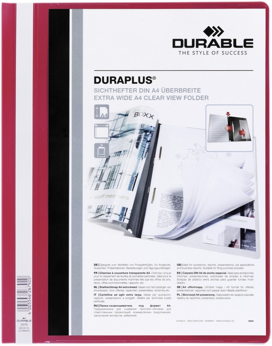Durable Angebotshefter Duraplus A4 mit Sichttasche Folie rot Packung mit 25 Stück