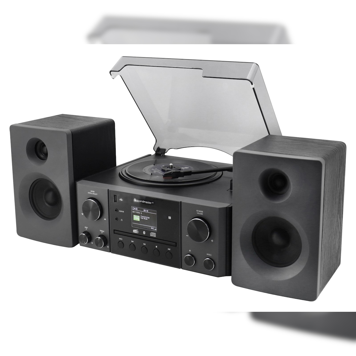 Soundmaster MCD1950SW Stereoanlage mit Plattenspieler DAB+ CD-Player USB MP3 Bluetooth Encoding Digitalisierung 75 Ohm Antennenanschluss