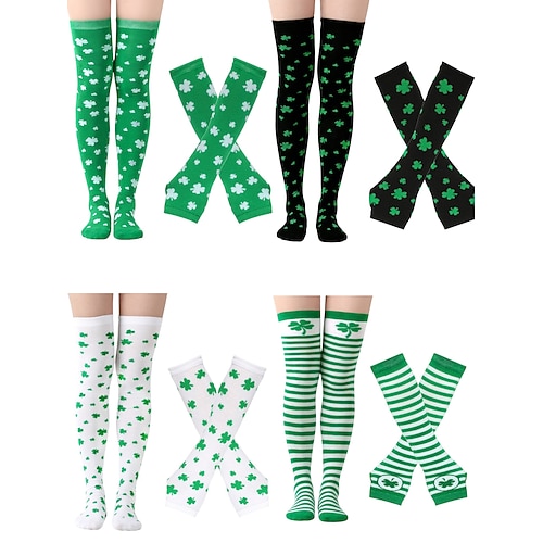 St. Patrick's Day Socke für Damen Armstulpen-Set, 4-teiliges Set aus kniehohen Socken mit Kleeblattmuster und fingerlosen Handschuhen, festliche Accessoires in Irischgrün für Damen Mädchen, perfekt