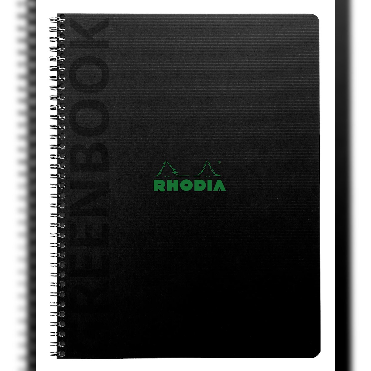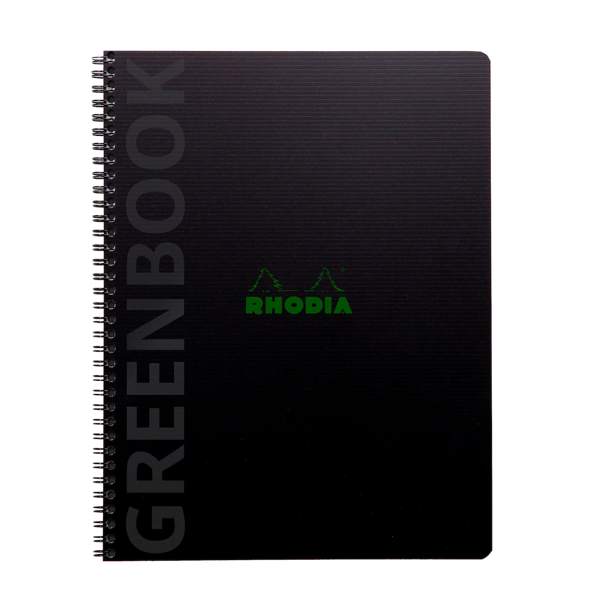 Rhodia 5x Rhodiactive Greenbook A4+ mit Spiralbindung, 80 Blatt liniert mit Kopfleiste, 4-fach gelocht, Recyclingpapier 90g - Schwarz 119914C