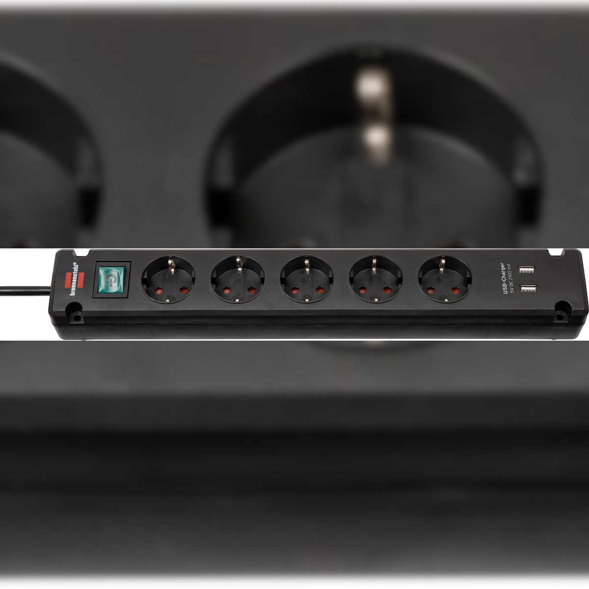 Brennenstuhl Steckdosenleiste Bremounta 5-fach + 2x USB schwarz 3m mit Schalter