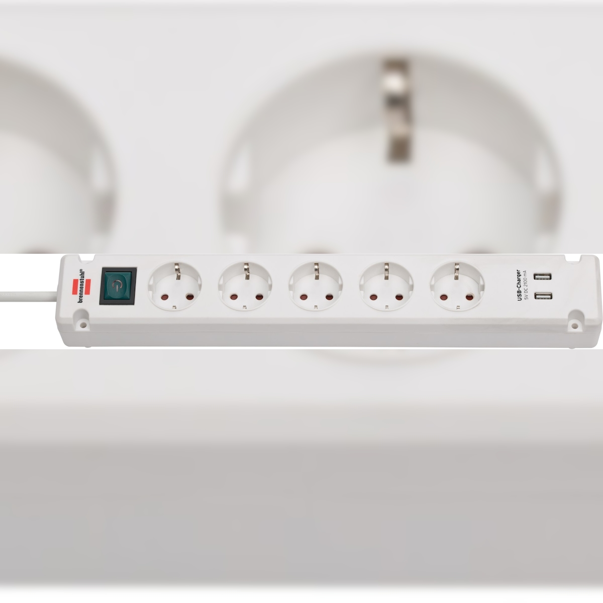 Brennenstuhl Steckdosenleiste Bremounta 5-fach + 2x USB weiß 3m mit Schalter
