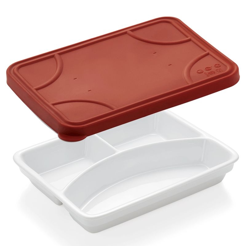 6x Abteilschale 3-fach Unterteilung weiß, Porzellan 23,5 x 17,5 x 4,5 cm + Silikon Deckel