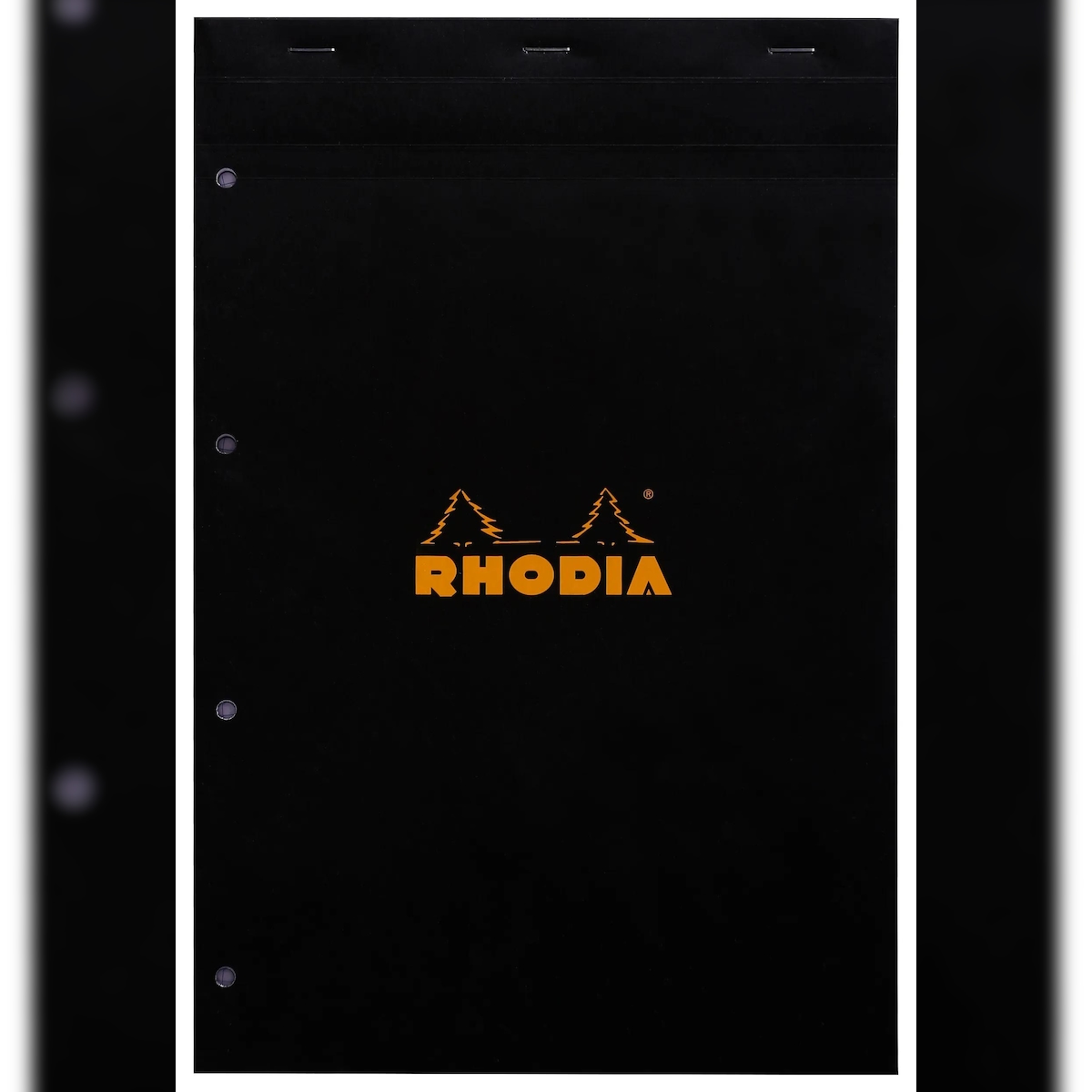 Rhodia 5x Gehefteter Notizblock Rhodia No.20 A4+, 80 Blatt kariert 80g, 4-fach gelocht - Schwarz 202009C