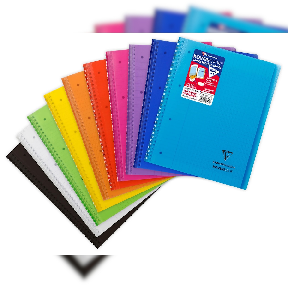 Clairefontaine 5x Koverbook Spiralblock A4+, 80 Bl 90g, französische Lineatur Seyés, abtrennbar, 4-fach gelocht, Einband aus PP - Sortiert 396401C