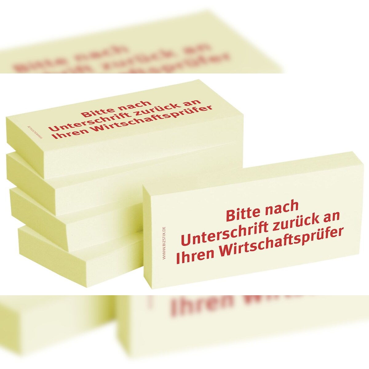 1301010128 Haftnotizen "Bitte nach Unterschrift zurück an Ihren Wirtschaftsprüfer" - 75 x 35 mm, 5x 100 Blatt