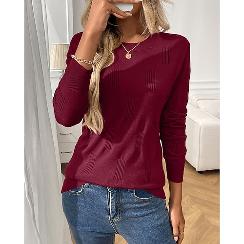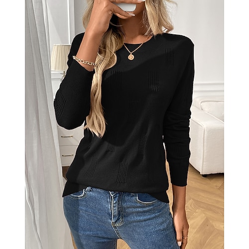 Per donna Blusa Top traforato Top Eleganti Semplice Elegante Vintage Signore Manica Lunga Girocollo Top Regolari Lavoro Quotidiano Ferie Traforato Tunica Con diamantini Nero Vino Verde militare Blu