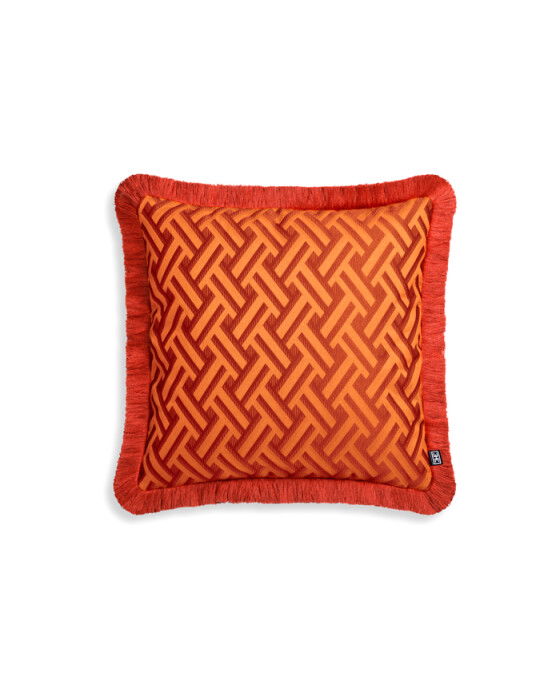 Hoii Coussin orange en velours 30x50 cm avec motif rayé Orange 30x12x50cm