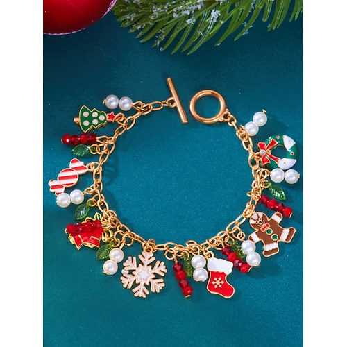 Braccialetto natalizio da donna, oro festivo con Babbo Natale, pupazzo di neve, pan di zenzero e ornamenti natalizi, regalo di Natale perfetto