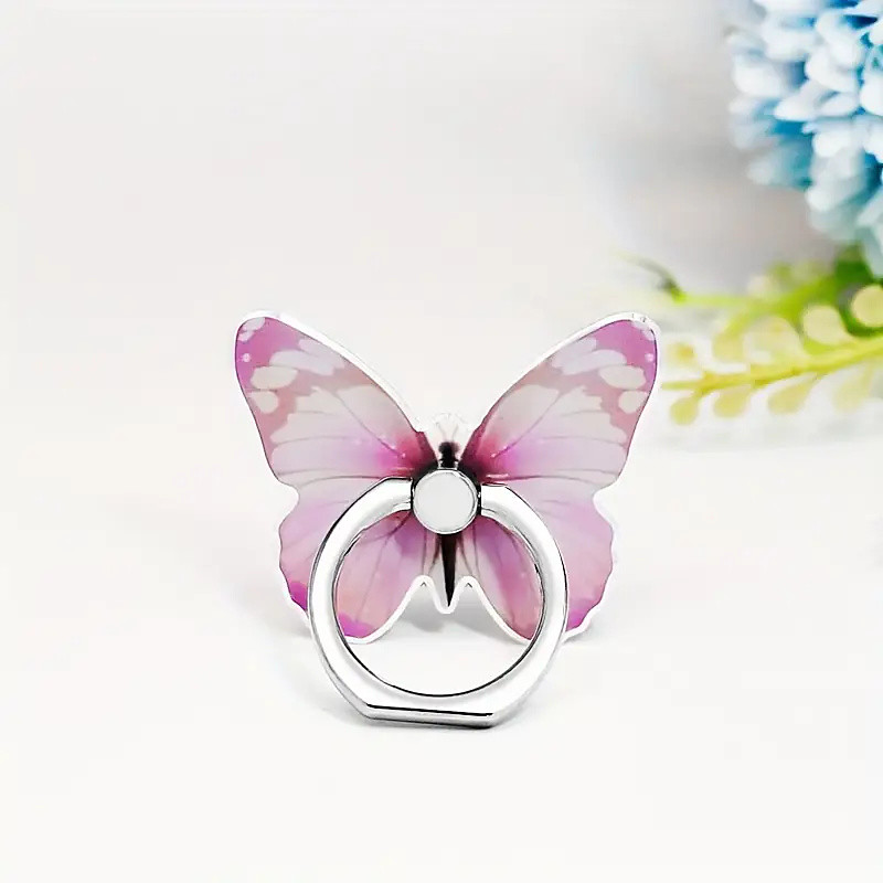 Cute Butterfly Pattern Phone Ring Stand - 360 Rotation Metal Finger Rest with Knob Ring Design for Secure Grip