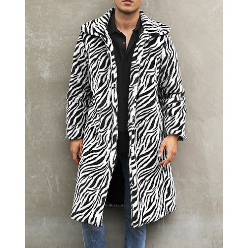 Per uomo Giacca Invernale Cappotto in Pelliccia Sintetica Vacanza Quotidiano Calore Termico Pile Autunno Inverno Leopardo Moda Streetwear Bavero Lungo Pelliccia sintetica Bianco Marrone Giacca