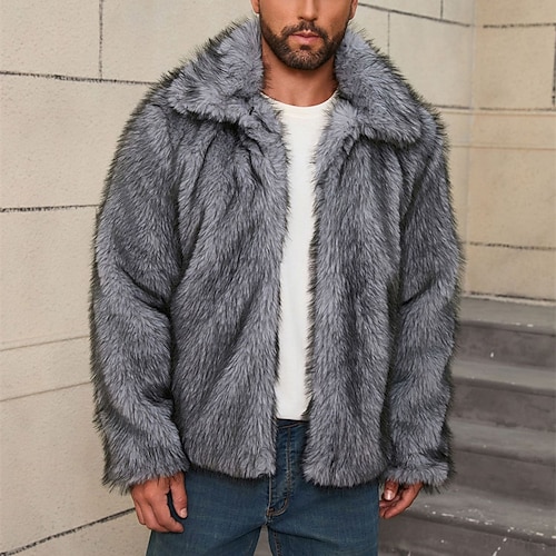 Per uomo Giacca Invernale Cappotto in Pelliccia Sintetica Vacanza Quotidiano Calore Termico Pile Autunno Inverno Semplice Moda Streetwear Bavero Regolare Pelliccia sintetica Bianco Marrone Grigio