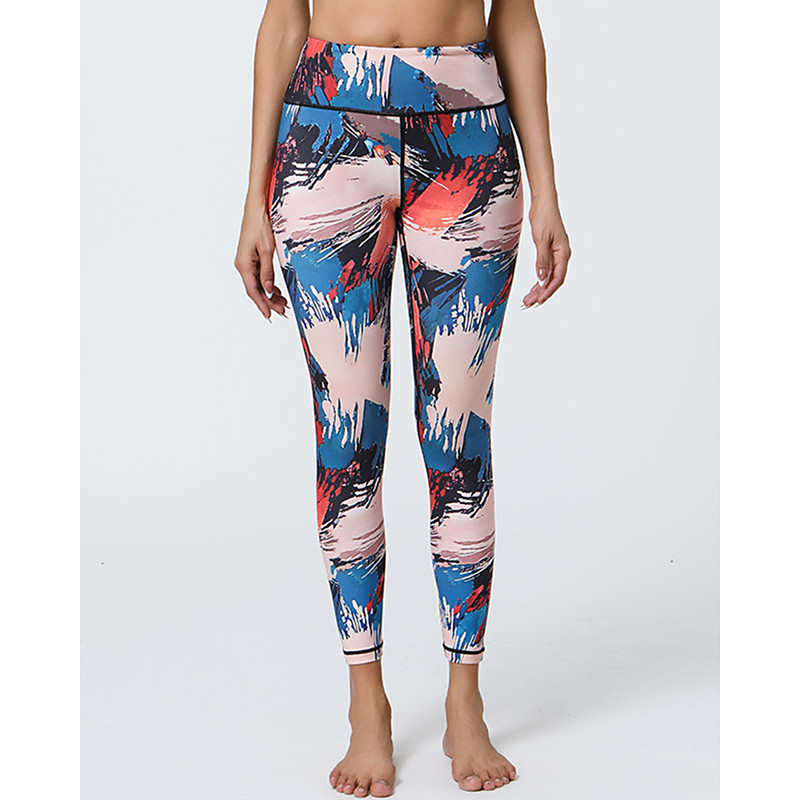Women's Capri Leggings Yoga Leggings Tummy Control High Waist Gym Athletic Pilates Bottoms Printing Black Yellow Blue Fall Sports Activewear Tight Fit