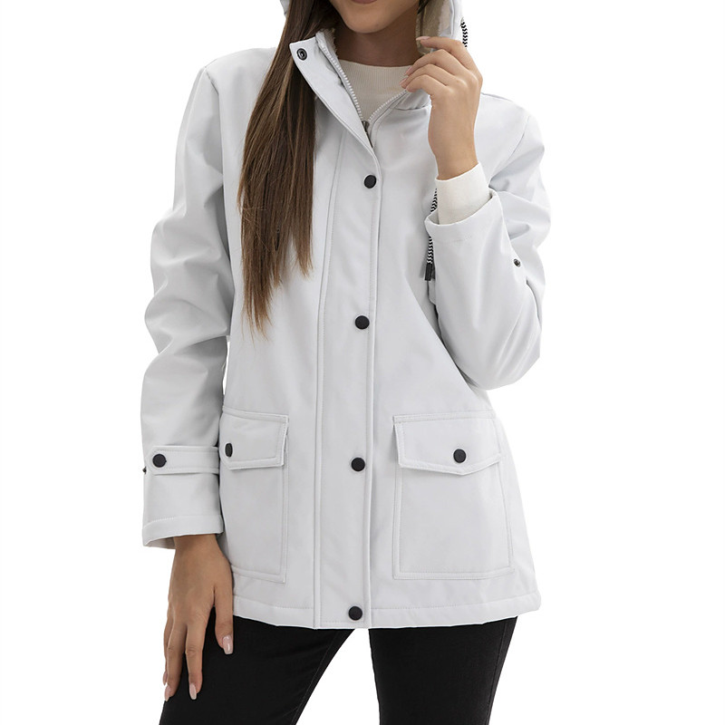 Women's Trench Coat Waterproof Rain Jackets Rain Coats Waterproof Windproof Zipper Pocket Fashion Outdoor Plain Going out Weekend Zipper Regular Hooded Regular Fit Long Sleeve Outerwear Black White