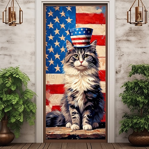 Decorazioni per porte del 4 luglio Coperture per porte Giorno dell'Indipendenza Americano Patriottico Insegna d'Entrata Tenda Decorativa per Porte Striscione per Porte Anteriori di Casa di Campagna