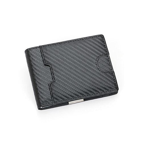 Portafoglio da uomo in fibra di carbonio con blocco RFID e fermasoldi in acciaio inossidabile – sottile porta carte bifold con tasca portamonete con cerniera per viaggi, lavoro e uso quotidiano