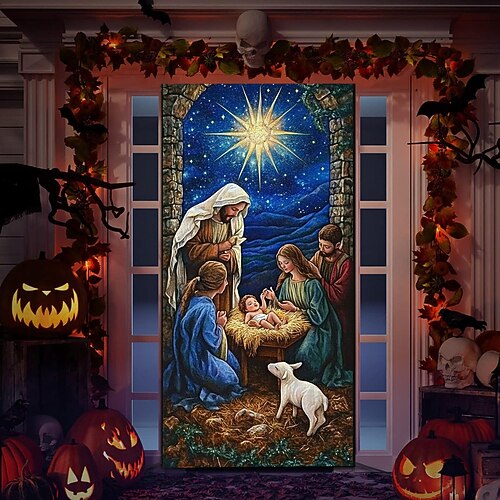 decorazioni natalizie per porte copriporta presepe natale pupazzo di neve arazzo per porta tenda per porta decorazione fondale striscione per porta interno/esterno per porta d'ingresso fattoria