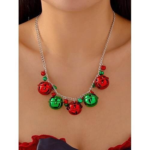 collana con ciondolo natalizio da donna, gioielli con catena pendente festiva con pupazzo di neve, renna e campanelle natalizie, graziosi accessori natalizi per feste e regali