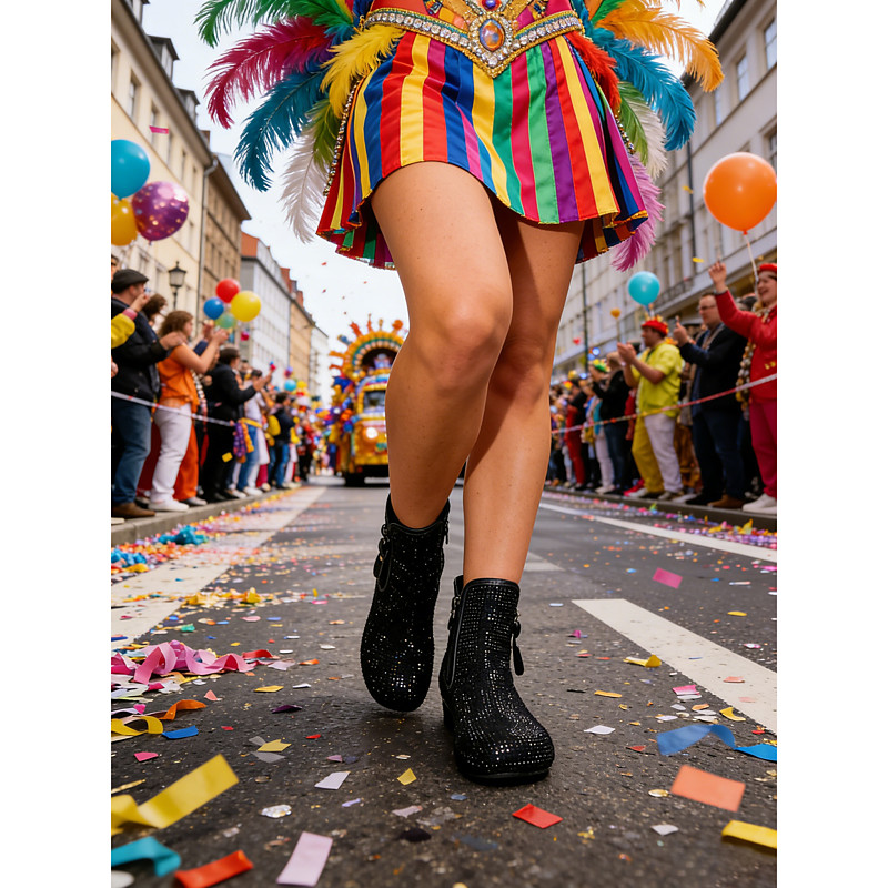 Women's Red Sparkly Rhinestone Ankle Boots - Festival Style Slip-On Casual Boots, Ideal for Carnival Parades, Costume Parties, Street Festivals Themed Celebrations