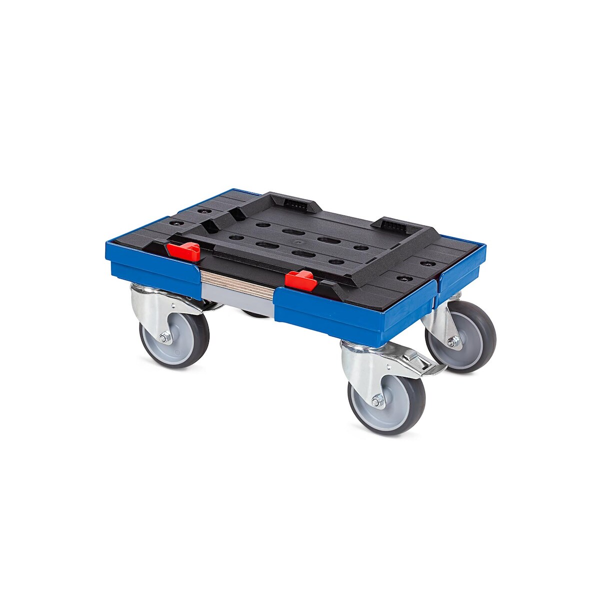 PROREGAL Transportroller für MetaBox S mit Gummiräder | BxT 40x30cm | 2 Bremsrollen & 2 Lenkrollen | Blau | Kistenroller Logistikroller Rollwagen