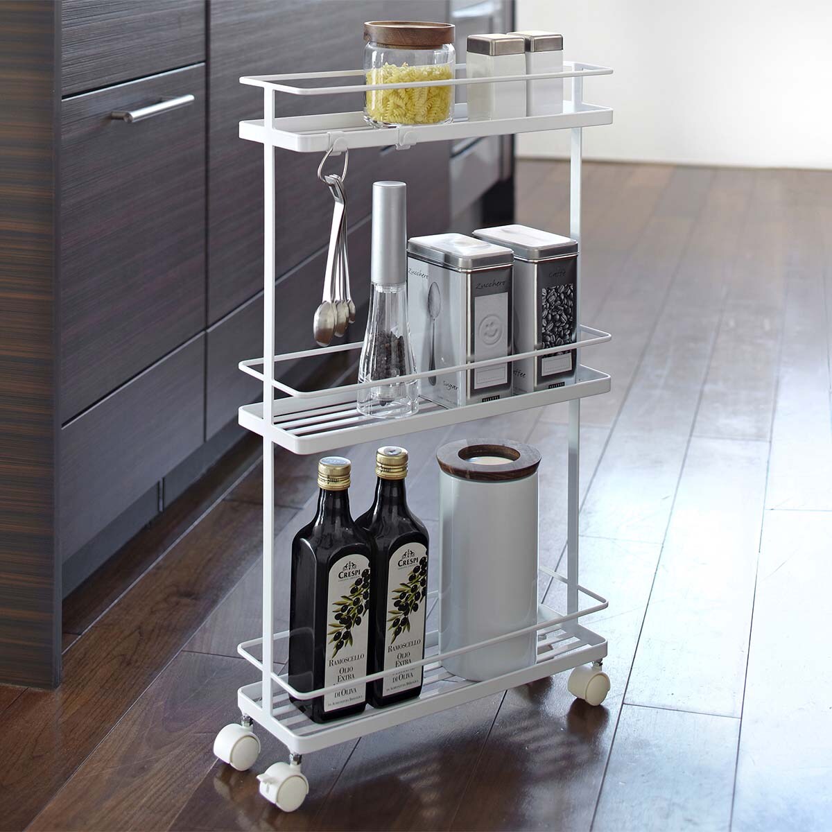 Yamazaki Home Küchenwagen mit Rollen Rollwagen Nieschenwagen Küchenregal Metall 3 Ebenen weiß 12x66x38cm