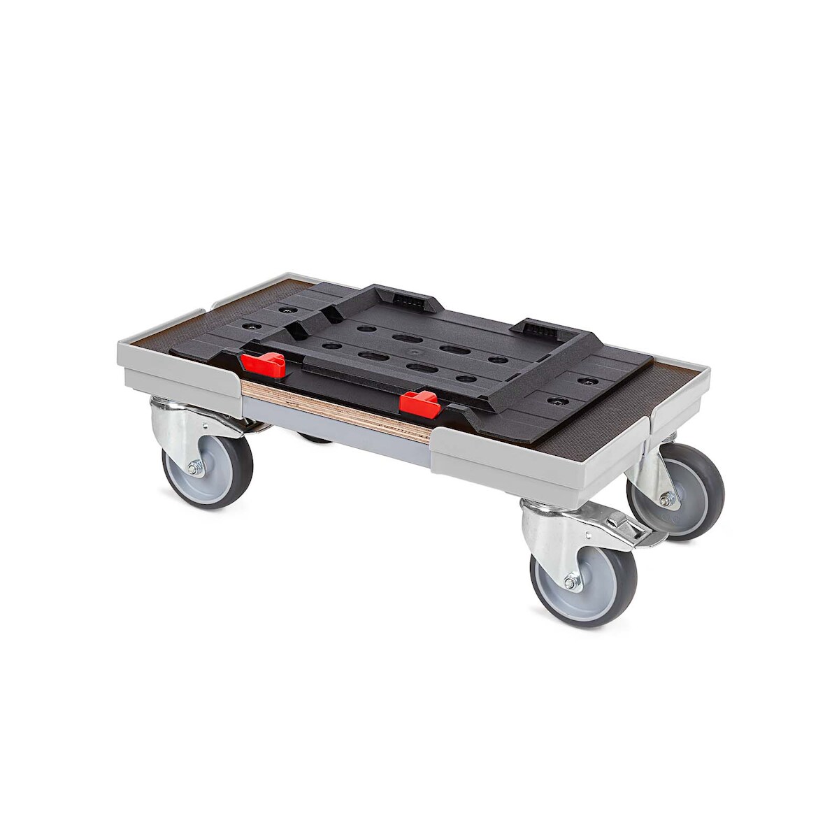 PROREGAL Transportroller für MetaBox L mit Gummiräder | BxT 50x30cm | 2 Bremsrollen & 2 Lenkrollen | Grau | Kistenroller Logistikroller Rollwagen