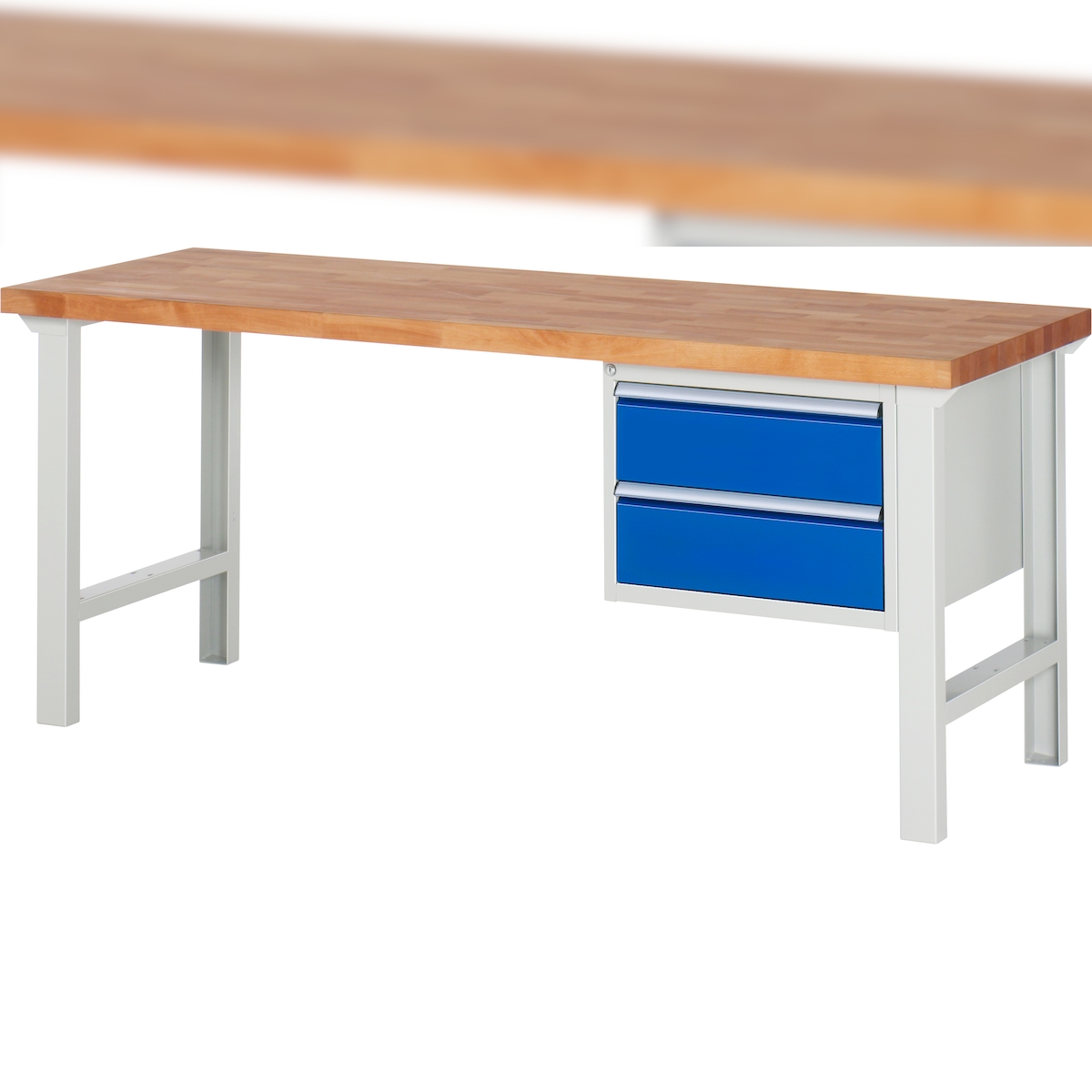 PROREGAL Werkbank Serie 7000 - Modell 7125 | HxBxT 84x200x70cm | 2x Schublade | Schubladenmaße 2x180mm | Lichtgrau | Arbeitstisch Werktisch