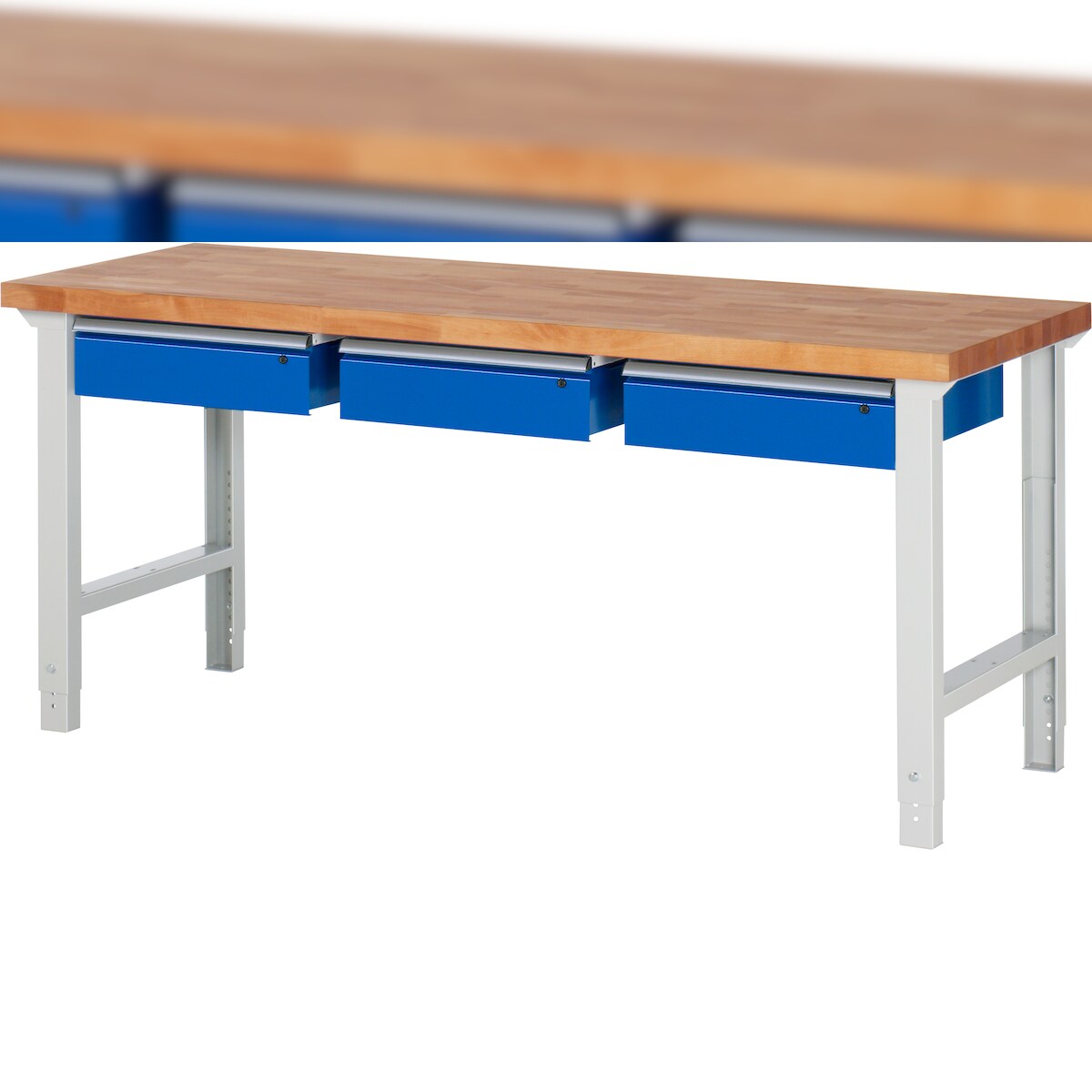 PROREGAL Werkbank Serie 7000 - Modell 7123 | HxBxT 79-114x300x70cm | 4x Schublade | Schubladenmaße 2x150 + 2x210mm