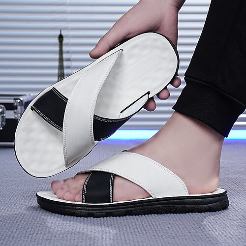 Per uomo Sandali Scarpe romane Cuoio Traspirante Comodo Antiscivolo Fibbia Nero Bianco
