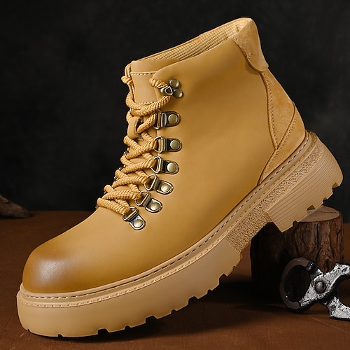 scarpe da lavoro stringate da uomo in similpelle color cuoio con suola spessa: calzature resistenti e comode per lavoro, viaggi e uso quotidiano