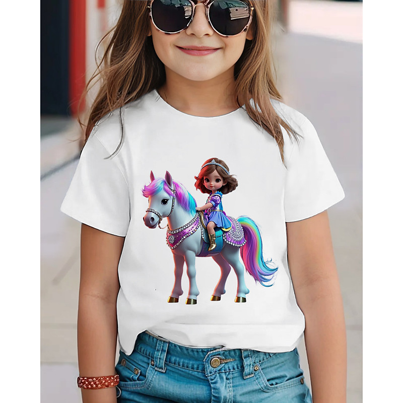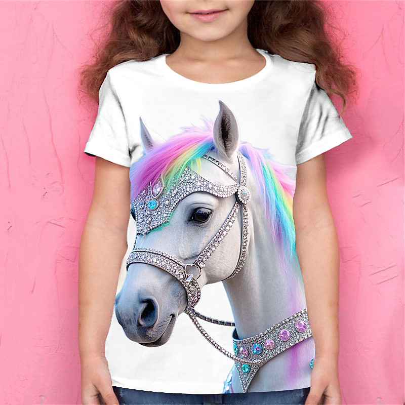 Girls' 3D Horse T shirt Tee Short Sleeve Summer Spring Fashion Basic Kids 4-12 Years Crew Neck Outdoor Casual Daily Regular Fit
