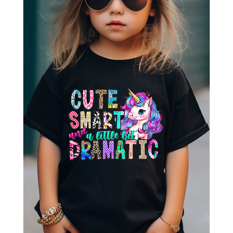 100% Cotton Kids Girls' Black Unicorn Letters T shirt Tee Crew Neck Short Sleeve Outdoor Vacation Daily Classic Casual Print Summer