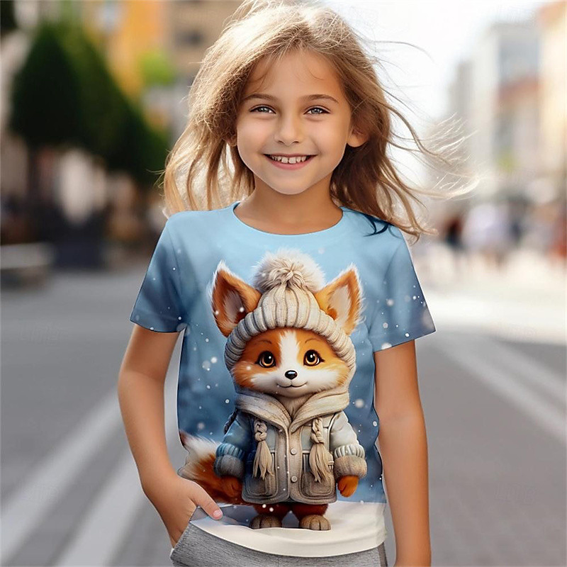 Girls' 3D Animal T shirt Tee Short Sleeve Summer Spring Fashion Basic Kids 4-12 Years Crew Neck Outdoor Casual Daily Regular Fit
